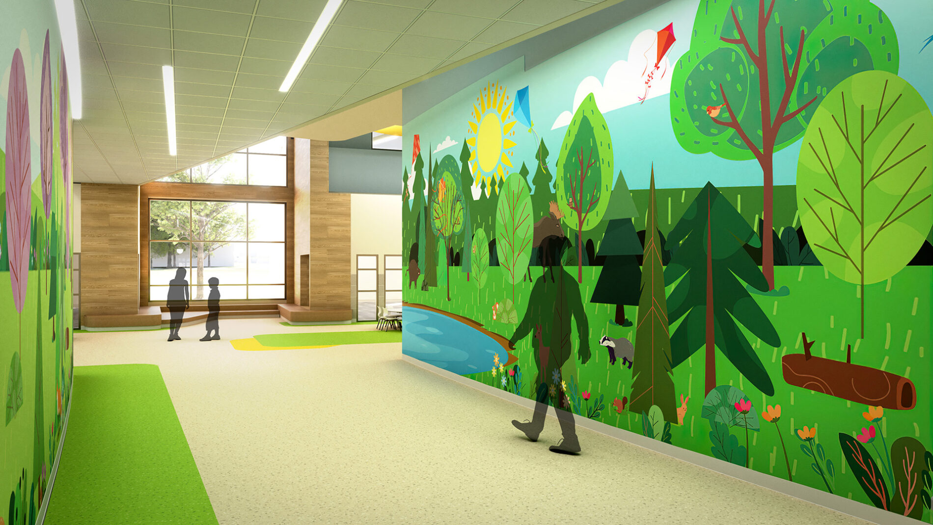 As the Construction Manager at Risk on the project, McCownGordon is leveraging our expertise working with unique learning environments and coordinating with specialized vendors that provide the detailed learning spaces. The building design includes two themed classroom wings called “neighborhoods” that stem from a large central courtyard and library. These neighborhoods include four learning-experience rooms, four traditional classrooms and two ECSE classroom that surround two large multli-purpose spaces. The building shape was designed to maximize natural light throughout all the areas.
